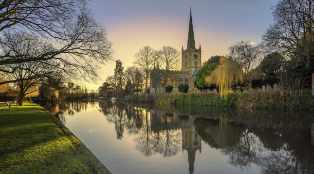 L'église de la Sainte-Trinité de Stratford-upon-Avon est une église du XIIIe siècle de style gothique de Stratford-upon-Avon dans le Warwickshire en Angleterre dédiée à la sainte Trinité. L'édifice est monument classé du Royaume-Uni Grade I. C’est dans cette église que repose la sépulture de William Shakespeare (il dispose d’une dalle dans le choeur auprès de sa femme Anne Hathaway et ses enfants). Un moment très émouvant, dans le calme du lieu. Scoop ! Une hypothèse dit que la tombe aurait été dérangée et que le crâne de l’écrivain a été volé…
